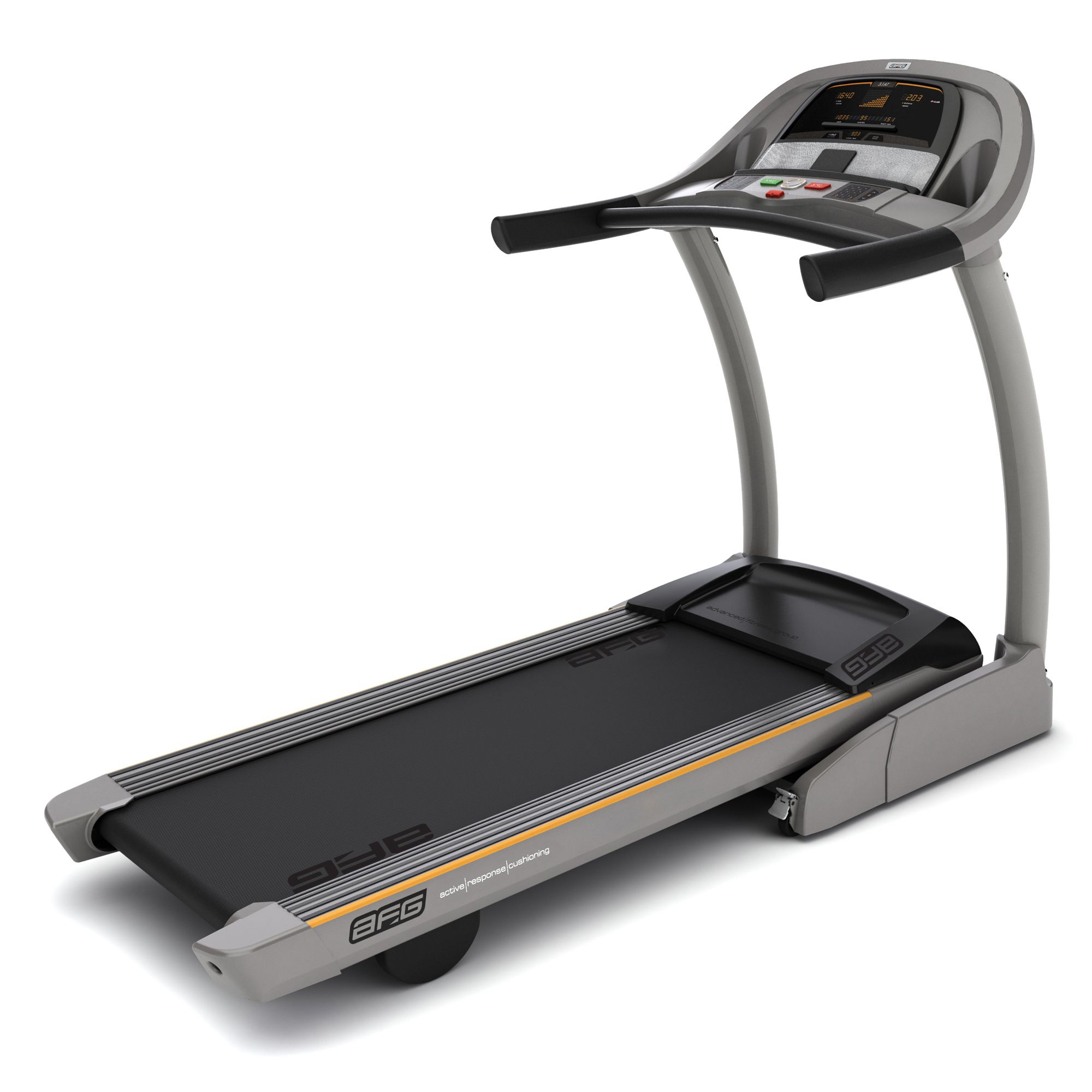 AFG 5.1AT Treadmill The beautifully designed, high-performance 5.1 AT treadmill is engineered to be versatile to adapt to your fitness goals. The intuitive controls make it easy to make home exercise a priority. Experience the steady, quiet performance of a 3.0 CHP commercial-grade drive motor and premium entertainment with 3W speakers, MP3/iPod compatible console port and headphone jack. The wireless heart rate receiver and advanced performance tracking technology provide optimal monitoring options. QUIET PERFORMANCE 3.0 HP continuous-duty motor delivers more power and still quiet so you can enjoy any level of workout without having to crank the volume on your TV or MP3 player. EASY MONITORING Our exclusive proFILE performance tracking technology with added goal setting enables up to two users to monitor and evaluate a variety of workout statistics. Convenient wireless heart rate interactivity also included. BUILT-IN ENTERTAINMENT Premium entertainment features, including 3W speakers, MP3/iPod compatible console port and headphone jack, provides additional motivation to get you through the entire workout. AFG treadmills are designed to blend the reliability of smart components with the convenience of workout-enhancing features to keep you comfortable and motivated as you move closer to achieving your fitness goals. AFG EXCLUSIVE FEATURES QUIET MOTORS Put down the remote. Our powerful CHP motors run so quietly that you can listen to a TV or radio at normal listening levels even when you\'re in a full sprint. RUGGED FRAMES A solid foundation. We use heavy gauge steel for a frame that won\'t shift or creak during the most intense exercise sessions. OPTIMIZED RUNNING AREA Spacious yet contained. AFG treadmill decks are long enough to accommodate the longest strides, and wide enough to give you plenty of room side-to-side while still making it easy step off the belt if necessary.